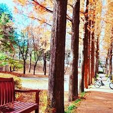 하늘공원 계단에서 시작되는 메타세쿼이아 길은 비오는 날, 햇살 뜨거운 날 모두 걷기 좋아요~ 나무들이 울창하게 자라 있기 때문에, 시원한 그늘을 만들어 줘요! 서울 가을단풍 명소 베스트에서는 이런 멋진 길을 놓칠 수 없죠?!